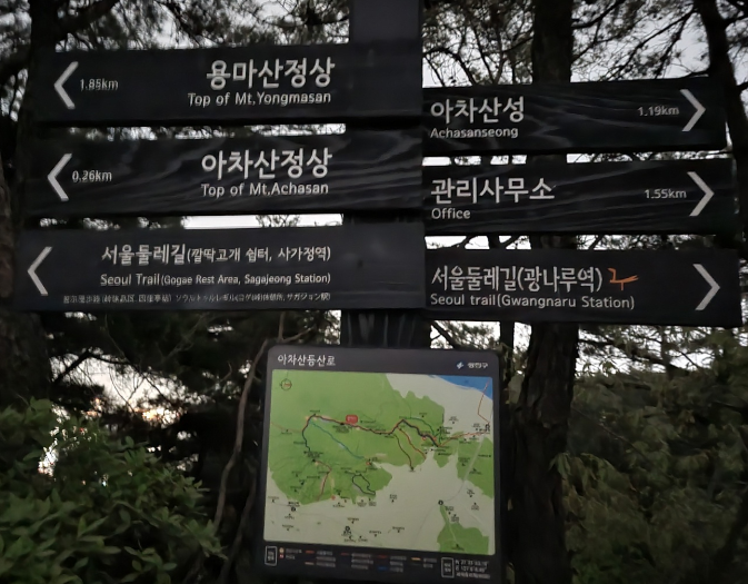 용마산을 연계해서도 많이 가지만 이번에는 아차산 3보루 까지만 가봅니다. We only go up to Mt. Achasan-3boru(아차산3보루) this time but many hikers go up to Mt. Yongmasan(용마산) over Achasan(아차산)