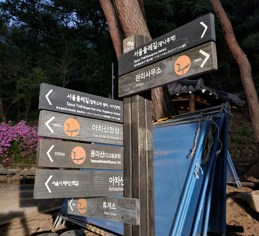 아차산 2번 출구에서 아차산 등산로입구까지 도보 14분 14 minutes on foot from Achasan station exit#2 to the trail entrance.